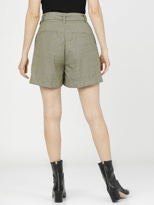 SAVE 33%Checkered Women Green Basic Shorts