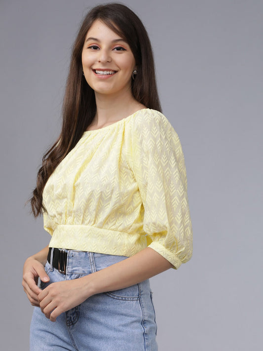 Casual 3/4 Sleeve Solid Women Yellow Top