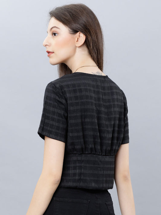 Casual Juliet Sleeve Solid Women Maroon Top BLACK