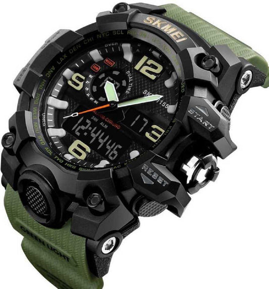 Men Sport Military Series Analogue Digital Military Green 1155GRN Waterproof Chorono Analog-Digital Watch - For Men