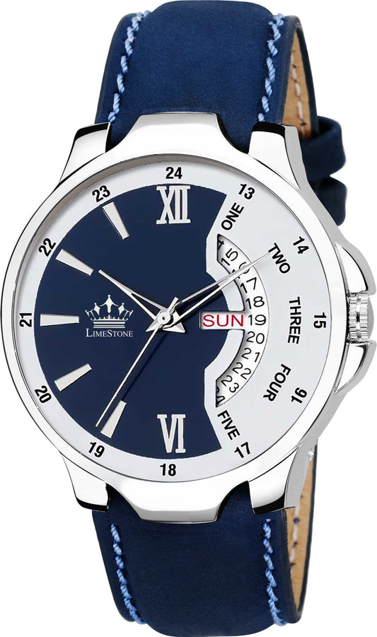 Bleed Blue Day and Date Functioning Strap Adult Quartz Analog Watch - For Men