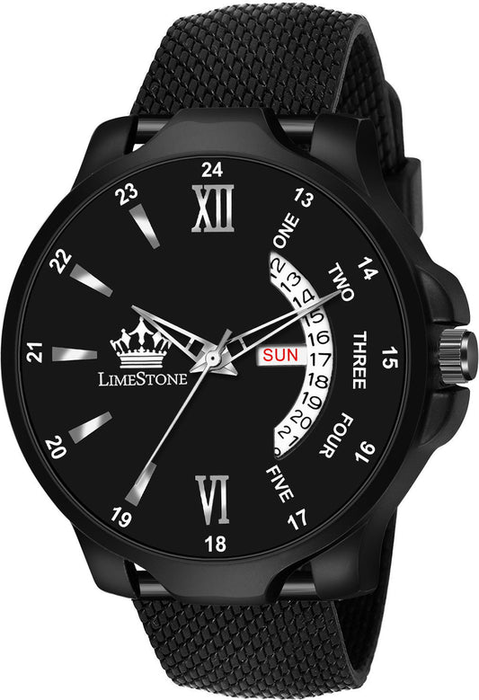 Mesh Strap Day and Date Functions All Black Quartz Analog Watch - For Men