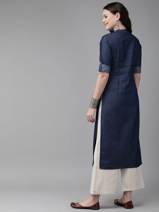 Women Embroidered Straight Kurta MUSTERED YELLOW